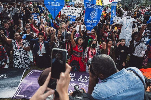 Fuente: https://www.elsaltodiario.com/cambio-climatico/lobby-fosil-cuela-instagram - Imagen de portada: Un asistente fotografía las movilizaciones durante la Cumbre del Clima en Egipto el pasado noviembre.]
